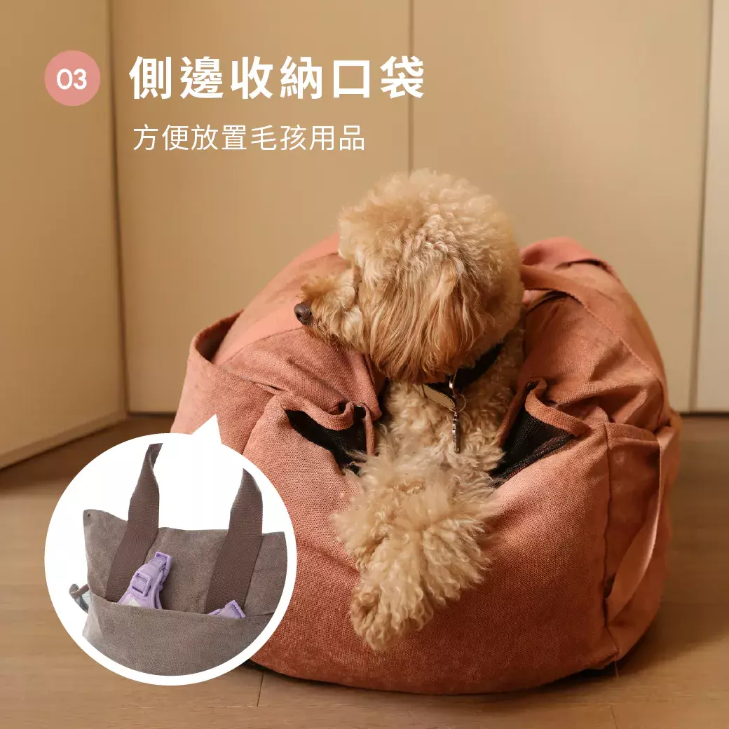 - 側口袋方便放置毛孩用品