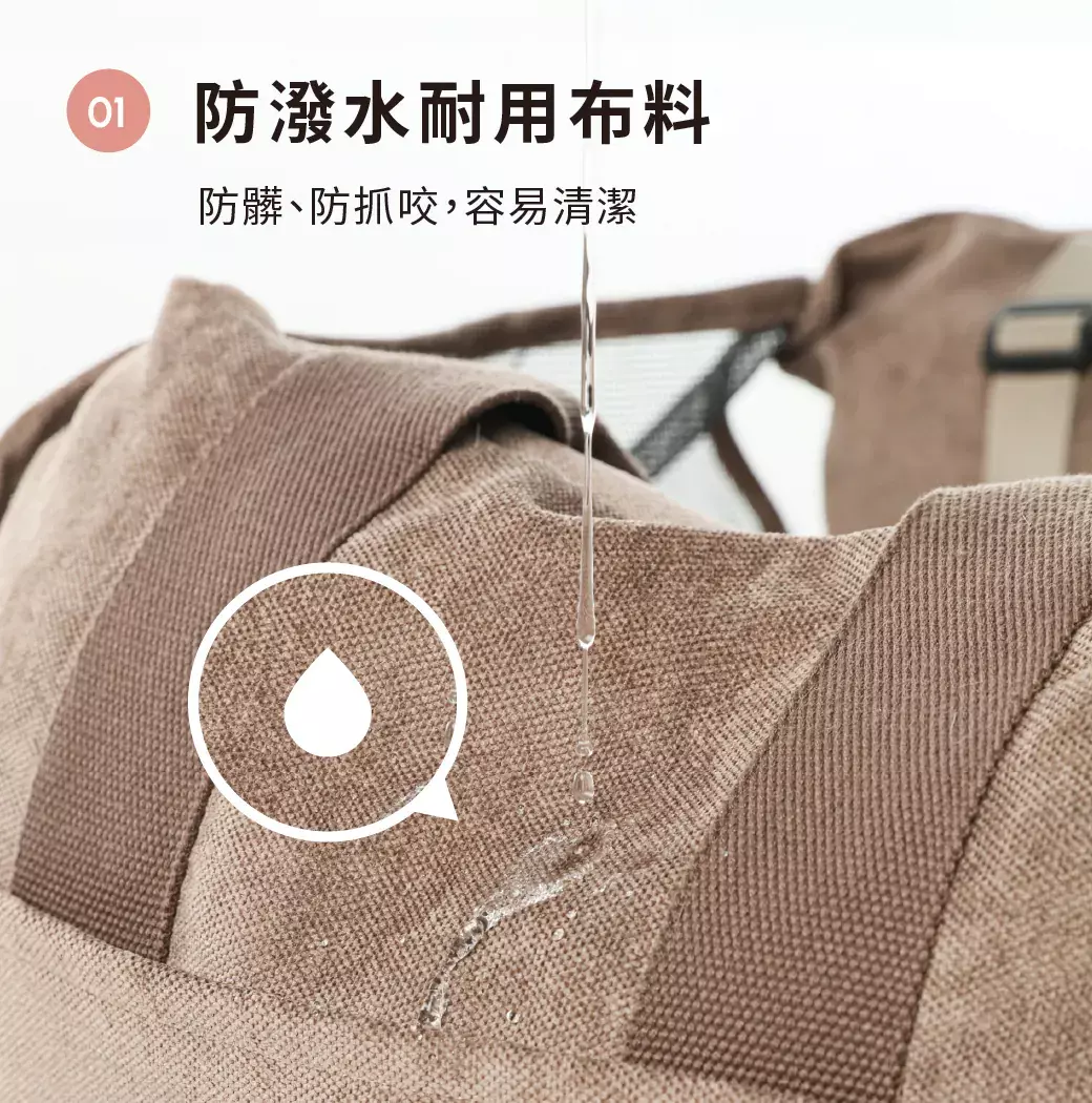 - 防潑水耐用布料:防髒防抓咬,容易清潔