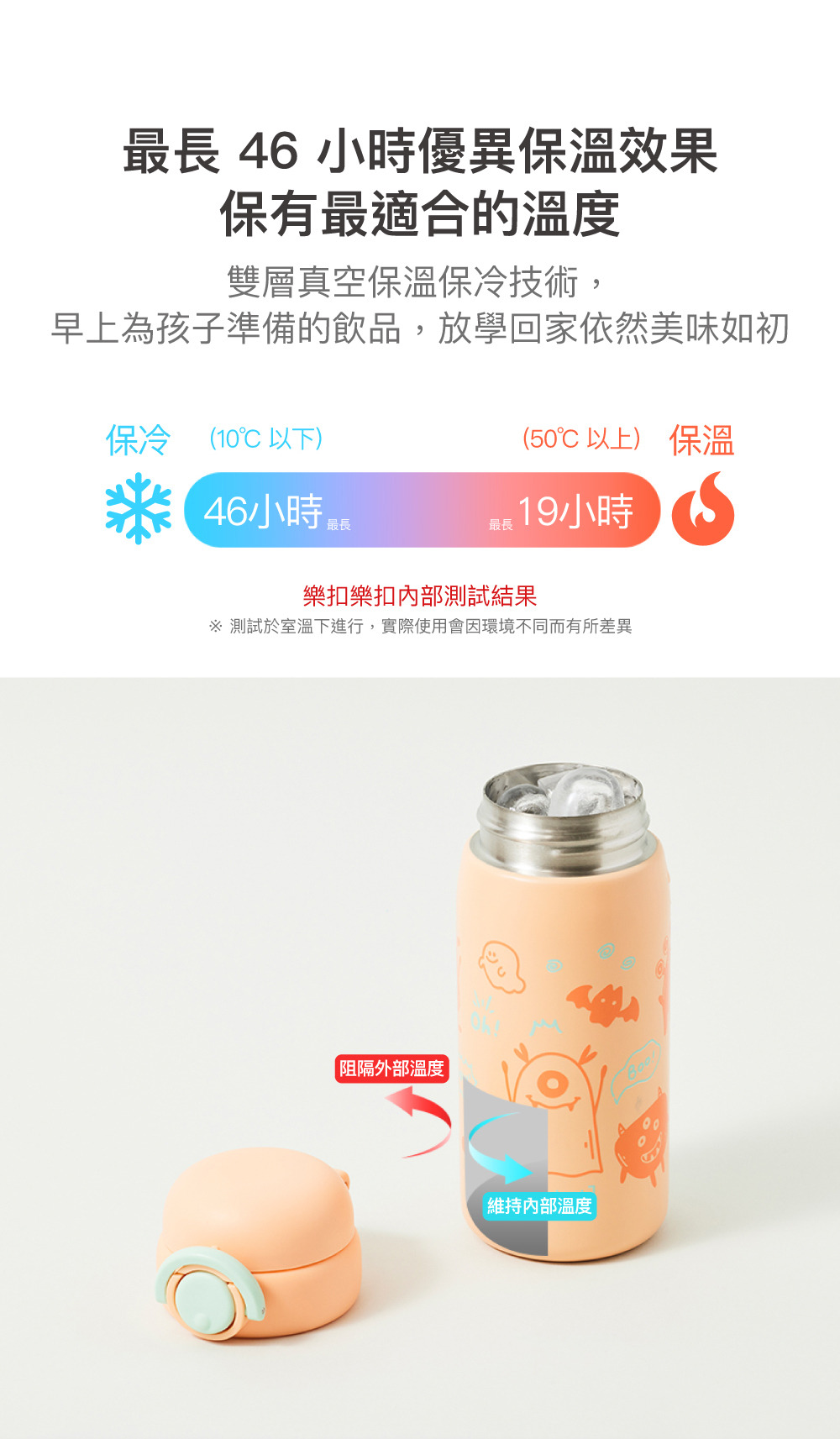 2.請勿使用於冰箱、微波爐及洗烘碗機等溫度高低落差大的電器中,以免影響產品保溫效果。