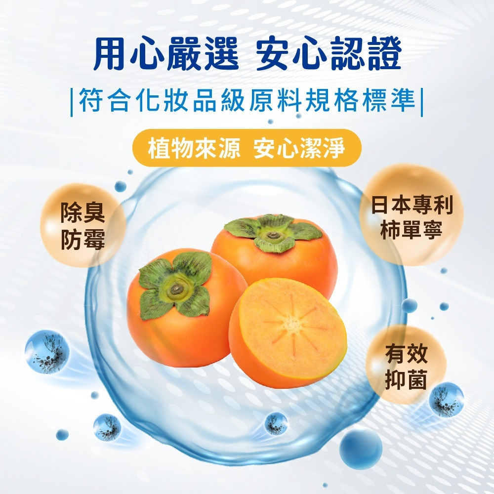 成分: 過碳酸鈉, 小蘇打, 日本專利柿子萃取, 香精, 抑菌劑