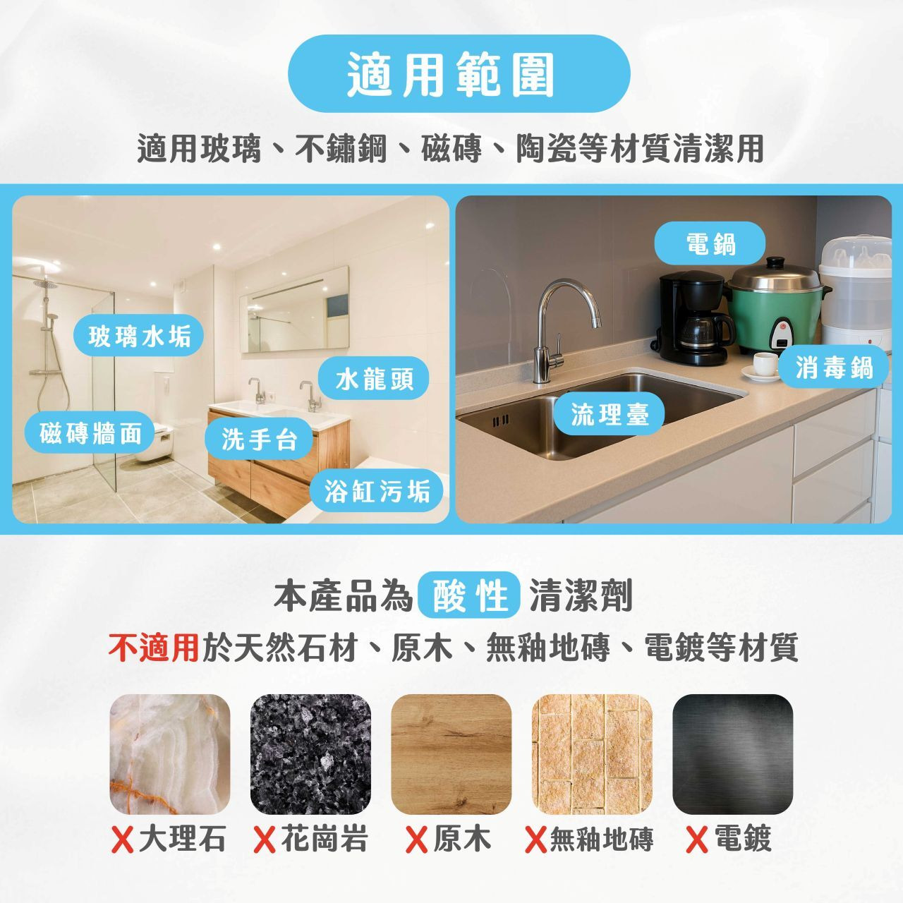 水垢去除:電鍋、流理台、消毒鍋